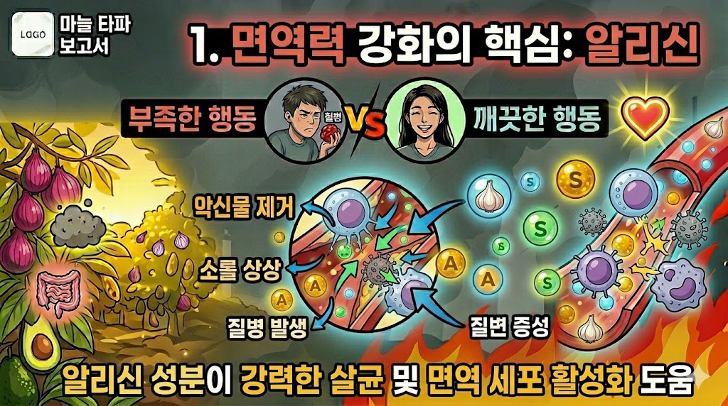 황 화합물: 알리신 외에 디프로필 디설파이드·프로필 메르캅탄 등 다양한 황 화합물이 혈관 보호에 기여합니다.