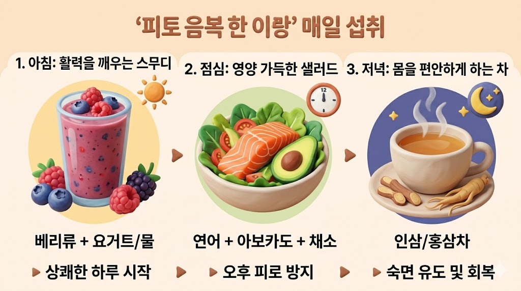 효과: 이 세 가지 조합이 즉각적인 기력 회복과 면역 자극을 동시에 제공합니다.