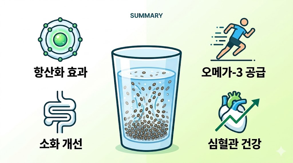 효과: 치아씨드의 항산화·오메가3·아연·셀레늄이 면역 기능을 복합적으로 지원합니다.