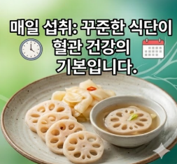 ⑤ 하루 적정량: 하루 연근 100~150g 또는 연근즙 100~150mL가 혈관 건강에 효과적인 양입니다.
