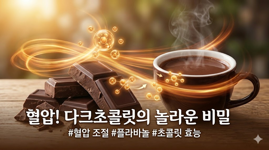 다크초콜릿 효능이 궁금하신가요? 플라바놀·테오브로민·마그네슘·혈압·항산화까지 다크초콜릿이 혈압을 낮추는 데 도움이 되는 이유와 올바른 섭취법을 완전 정리했습니다.