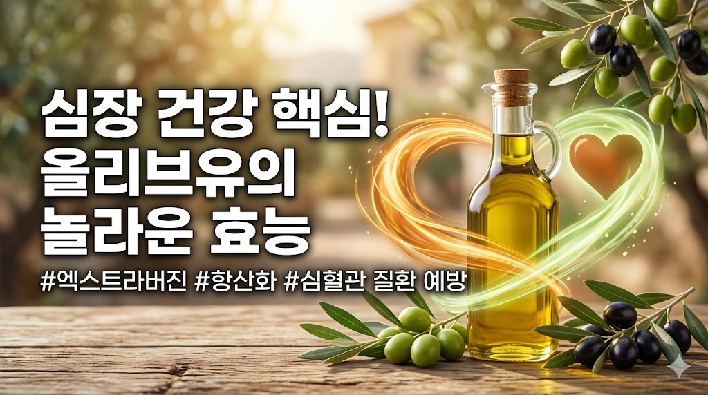 올리브유 효능이 궁금하신가요? 올레산·올레오칸탈·폴리페놀·심장 건강·항산화까지 올리브유가 심장 건강의 핵심인 이유와 올바른 섭취법을 완전 정리했습니다.