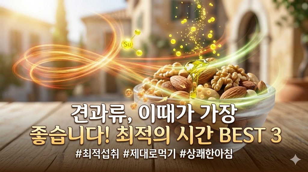 견과류가 언제 먹느냐에 따라 효과가 완전히 달라집니다. 아침 공복에 먹으면 지용성 비타민 흡수율이 극대화되고 식사 30분 전에 먹으면 포만감이 미리 형성되어 식사량이 자연스럽게 줄어듭니다. 운동 전에 먹으면 지속적인 에너지를 공급하고 취침 전에 먹으면 트립토판이 세로토닌·멜라토닌으로 전환되어 수면의 질이 향상됩니다. 같은 견과류도 먹는 시간에 따라 혈당 관리·체중 관리·수면·운동 능력에 미치는 효과가 극적으로 달라집니다. 이 글에서는 견과류 먹는 최적 시간을 목적·성분·기전별로 구체적으로 정리해 드립니다.