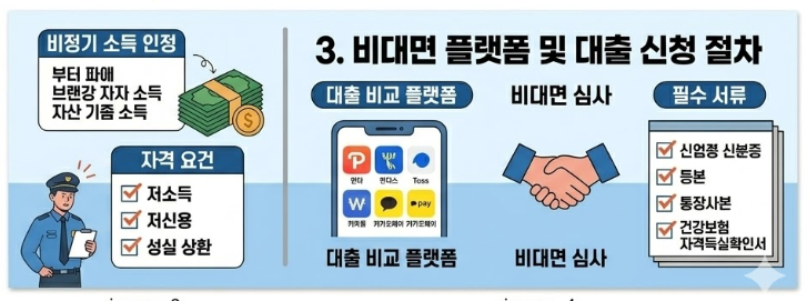 | 신용 대출 | 소득 증빙 필요 (완전 무직자 제한) |